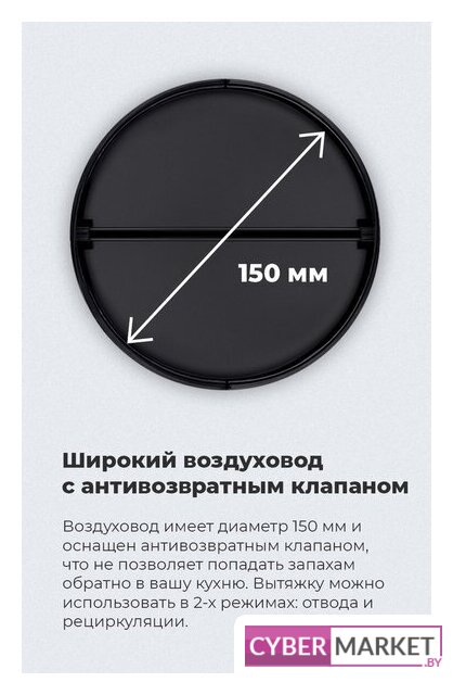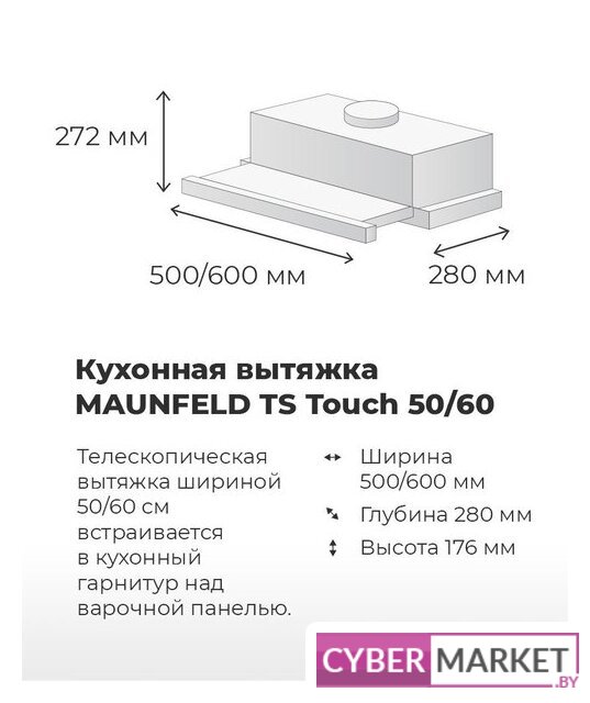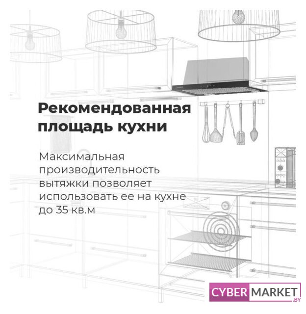 конструкция купольная, монтаж настенный, ширина 60 см, управление механическое/кнопочное, производительность мотора 750 м³/ч, цвет белый