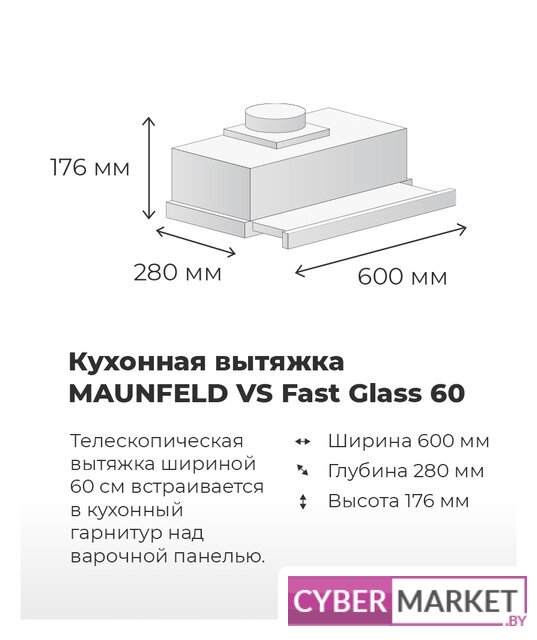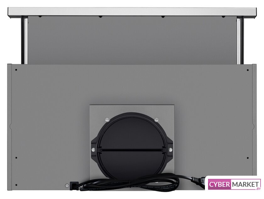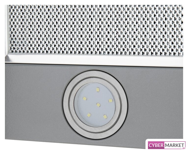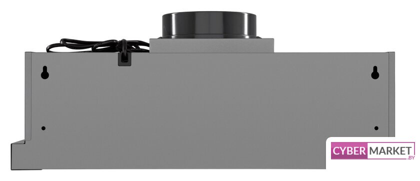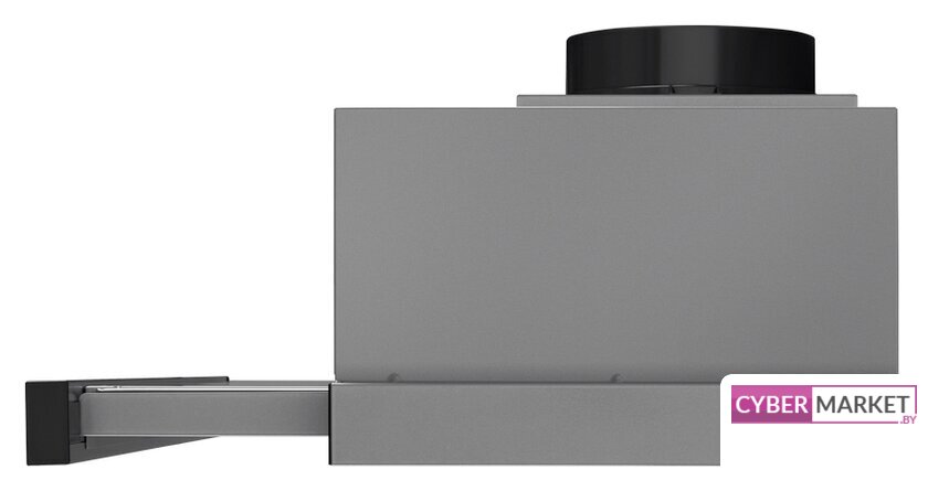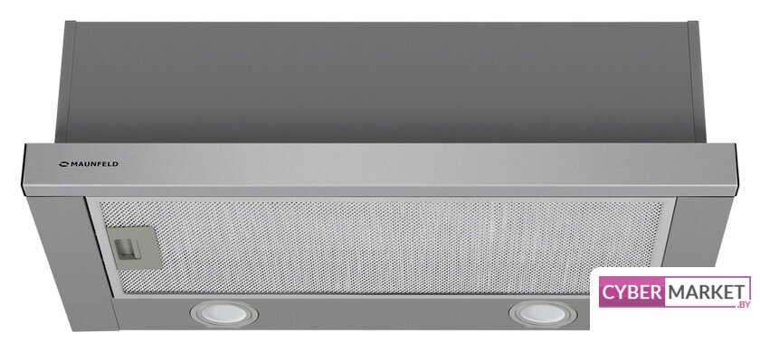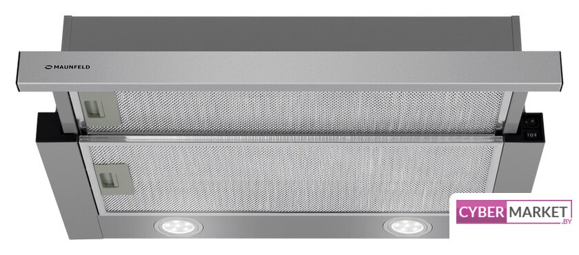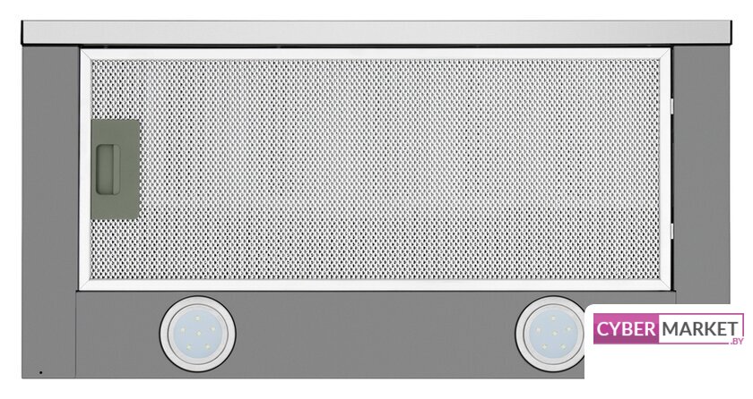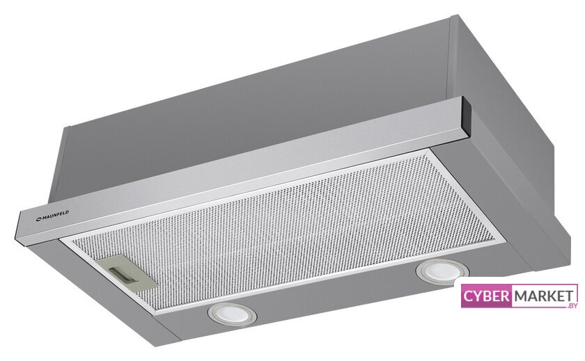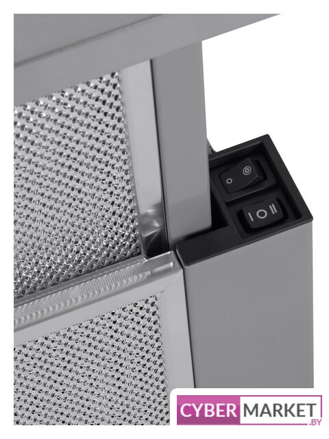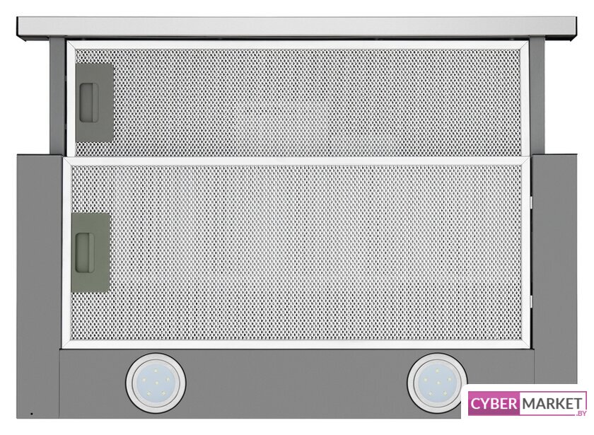 конструкция телескопическая, монтаж для встраивания, ширина 59.5 см, управление механическое/кнопочное, производительность мотора 600 м³/ч, цвет нержавеющая сталь