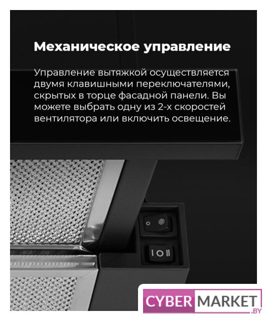 конструкция скрытая, монтаж для встраивания, ширина 52.5 см, управление механическое/кнопочное, производительность вытяжки 400 м³/ч, производительность мотора 400 м³/ч, цвет нержавеющая сталь