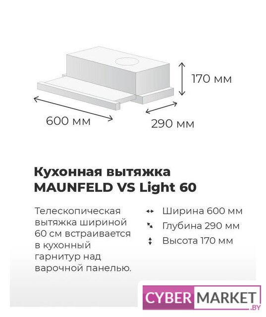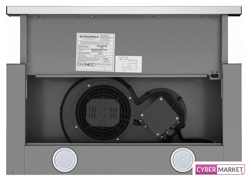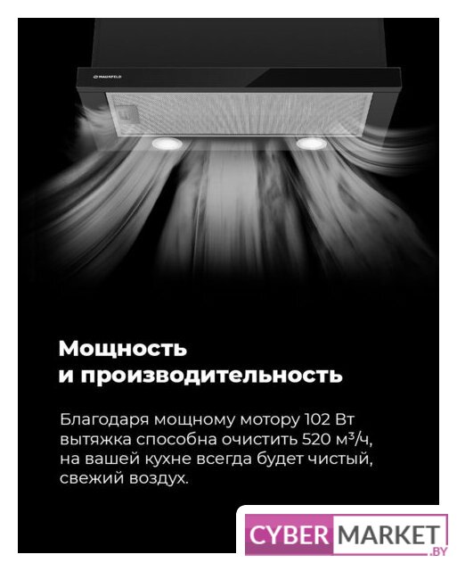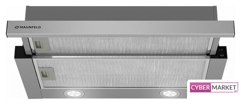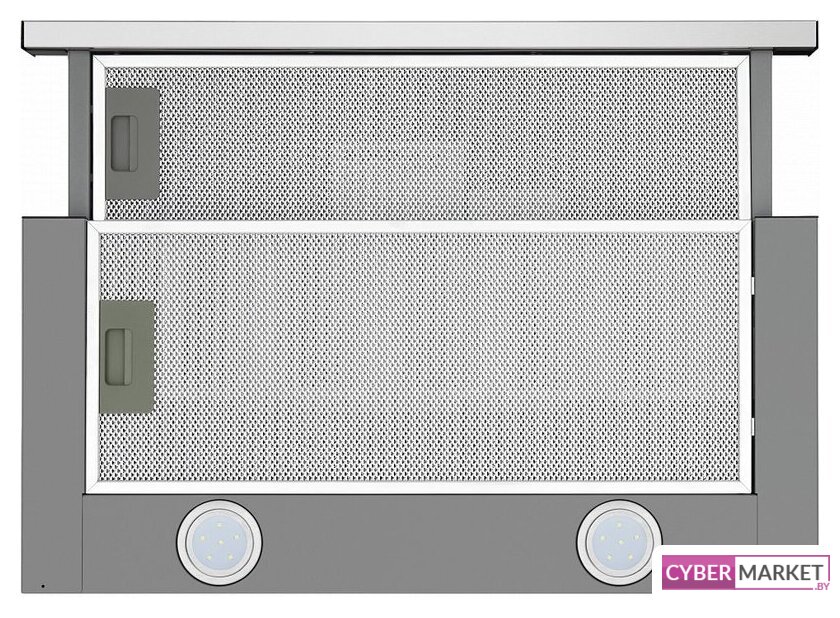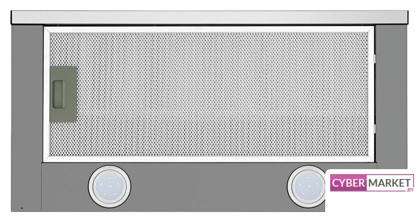 конструкция скрытая, монтаж для встраивания, ширина 59.8 см, управление механическое/кнопочное, производительность мотора 520 м³/ч, цвет нержавеющая сталь
