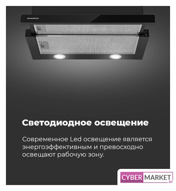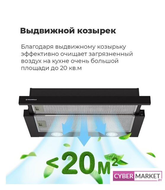 конструкция телескопическая, монтаж для встраивания, ширина 50 см, управление механическое/слайдерное, производительность мотора 520 м³/ч, цвет черный