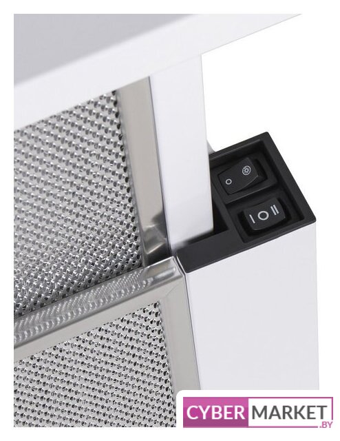конструкция телескопическая, монтаж для встраивания, ширина 50 см, управление механическое/слайдерное, производительность мотора 520 м³/ч, цвет белый