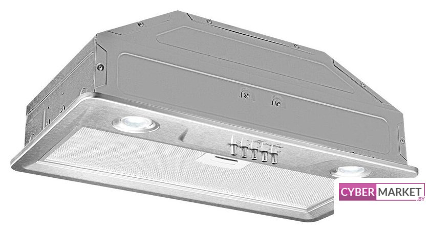 конструкция скрытая, монтаж для встраивания, ширина 52.5 см, управление механическое/кнопочное, производительность мотора 550 м³/ч, цвет белый