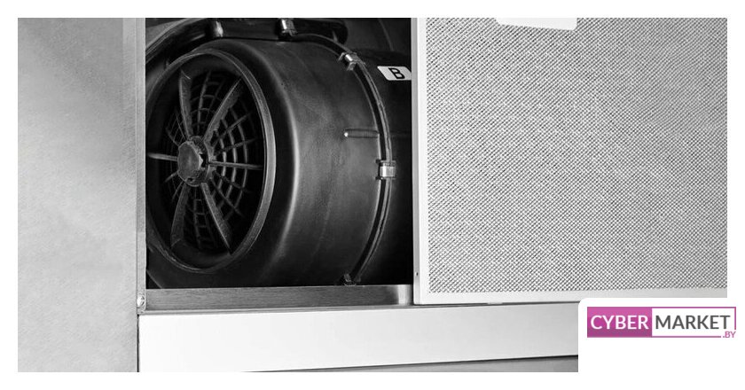 конструкция скрытая, монтаж для встраивания, ширина 52 см, управление механическое/кнопочное, производительность мотора 850 м³/ч, цвет нержавеющая сталь