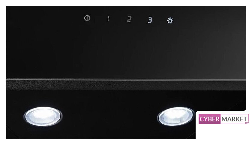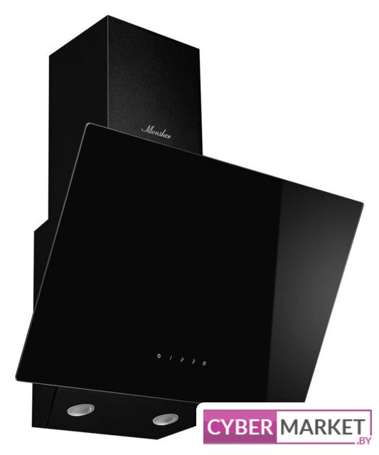 конструкция наклонная, монтаж настенный, ширина 59.8 см, управление механическое/кнопочное, производительность мотора 1030 м³/ч, цвет черный