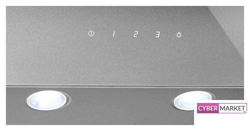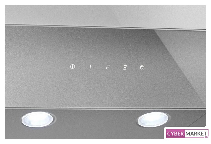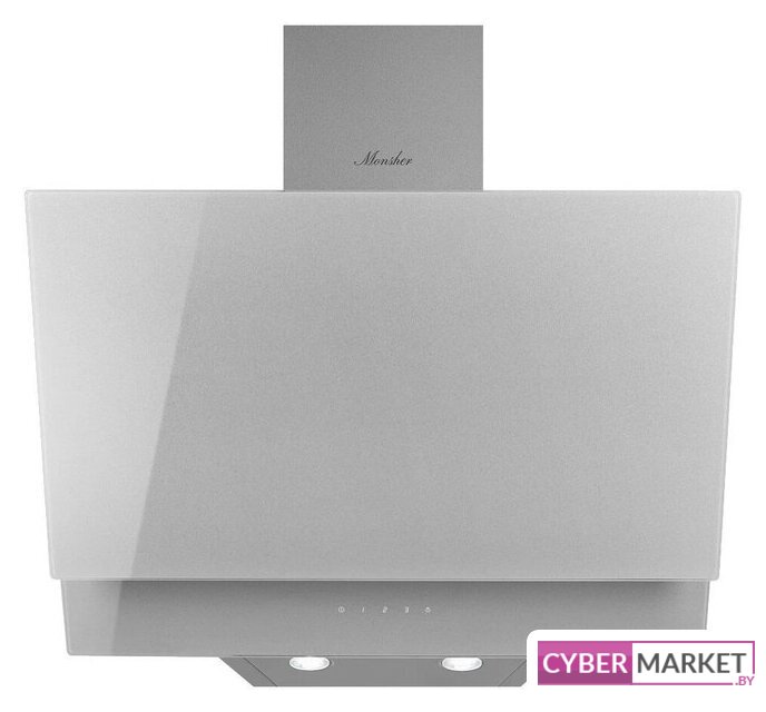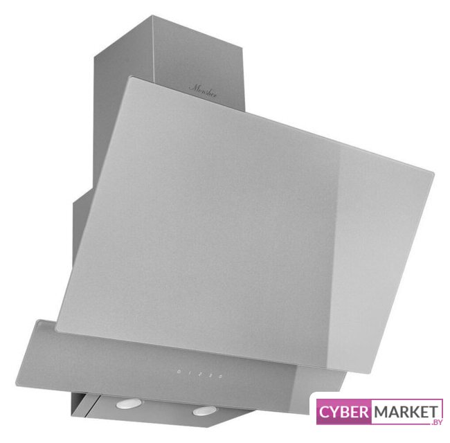 конструкция наклонная, монтаж настенный, ширина 60 см, управление электронное/поворотный переключатель, производительность вытяжки 450 м³/ч, цвет серый