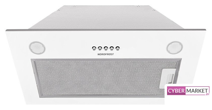 конструкция скрытая, монтаж для встраивания, ширина 52 см, управление механическое/кнопочное, производительность мотора 700 м³/ч, цвет белый