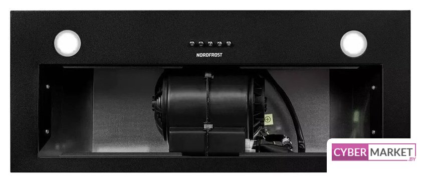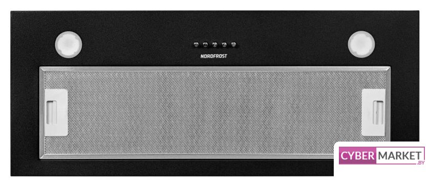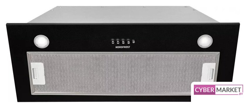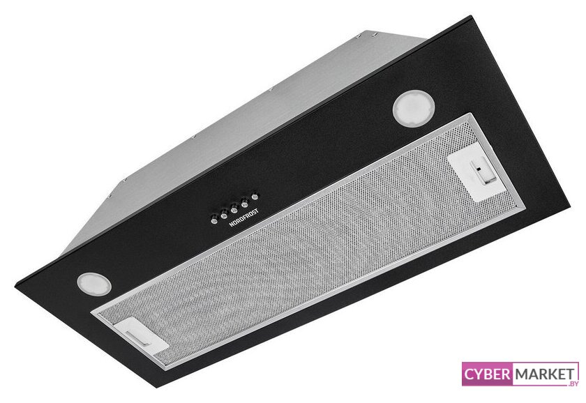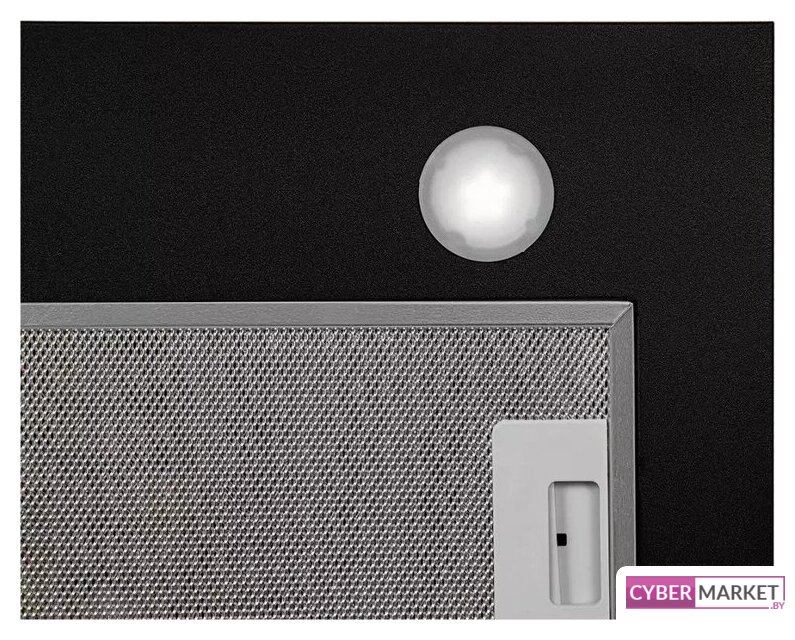 конструкция скрытая, монтаж для встраивания, ширина 59.8 см, управление механическое/кнопочное, производительность мотора 850 м³/ч, цвет черный