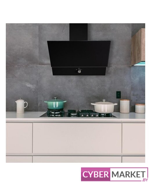конструкция телескопическая, монтаж для встраивания, ширина 59.7 см, управление механическое/слайдерное, производительность мотора 800 м³/ч, цвет черный