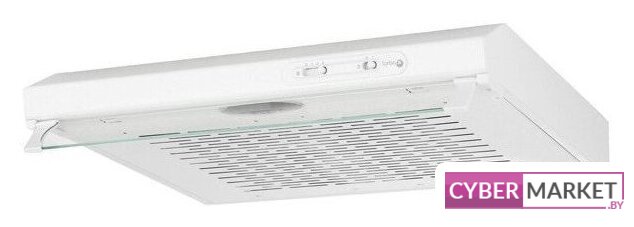 конструкция плоская, монтаж настенный, ширина 60 см, управление механическое/кнопочное, производительность мотора 280 м³/ч, цвет белый