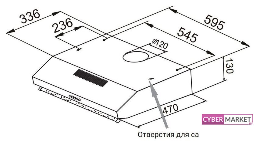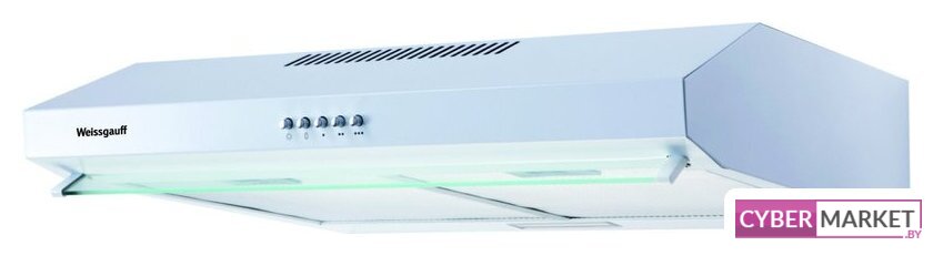 конструкция плоская, монтаж настенный, ширина 59.6 см, управление механическое/кнопочное, производительность мотора 455 м³/ч, цвет белый