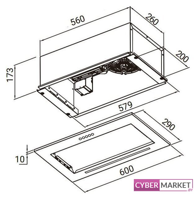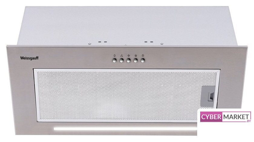 конструкция телескопическая, монтаж для встраивания, ширина 59.5 см, управление механическое/кнопочное, производительность мотора 600 м³/ч, цвет нержавеющая сталь