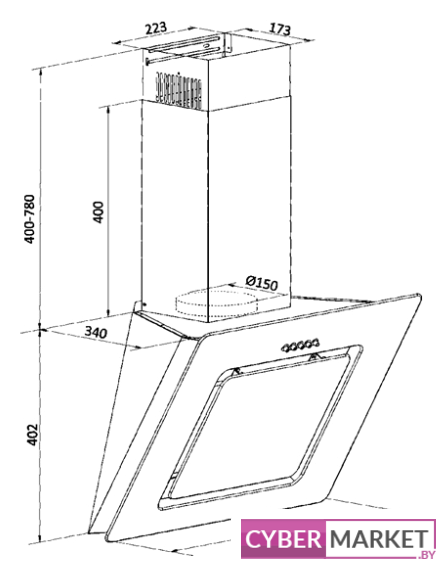 конструкция купольная, монтаж настенный, управление электронное/кнопочное, производительность мотора 600 м³/ч, ширина 60 см