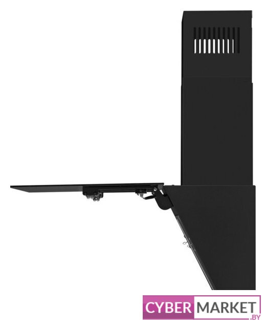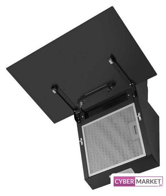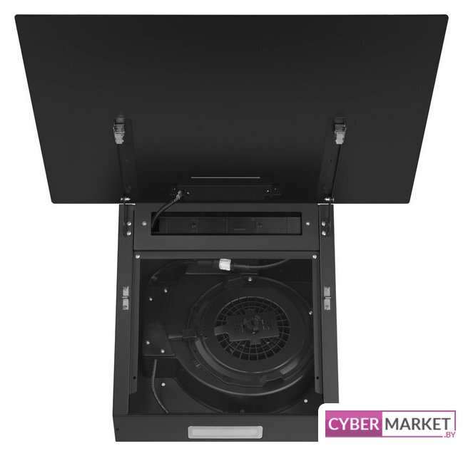 конструкция скрытая, монтаж для встраивания, ширина 52 см, управление механическое/кнопочное, производительность мотора 650 м³/ч, цвет черный