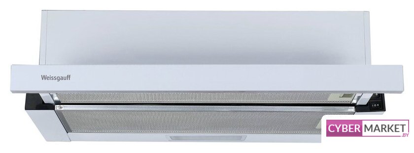 конструкция телескопическая, монтаж для встраивания, управление механическое/кнопочное, производительность мотора 400 м³/ч, ширина 50 см