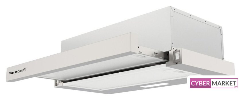 конструкция телескопическая, монтаж для встраивания, ширина 60 см, управление механическое/слайдерное, производительность мотора 520 м³/ч, цвет белый