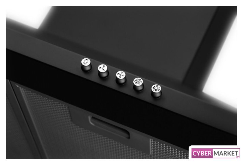 конструкция наклонная, монтаж настенный, ширина 60 см, управление механическое/кнопочное, производительность вытяжки 172 м³/ч, цвет черный