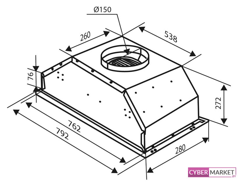 конструкция скрытая, монтаж для встраивания, ширина 53 см, управление электронное/кнопочное/дистанционное, производительность мотора 1100 м³/ч, цвет белый