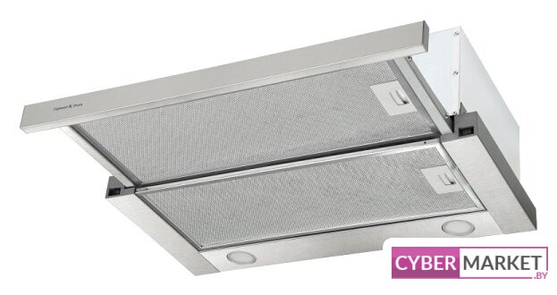 конструкция скрытая, монтаж для встраивания, ширина 52 см, управление механическое/кнопочное, производительность мотора 800 м³/ч, цвет нержавеющая сталь