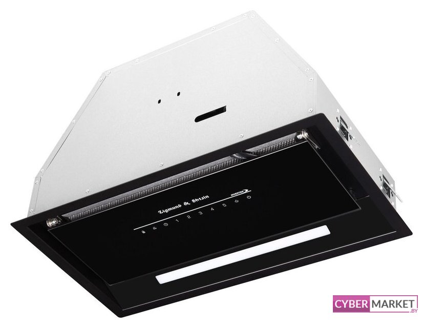 конструкция скрытая, монтаж для встраивания, ширина 59.8 см, управление электронное, производительность мотора 750 м³/ч, цвет черный