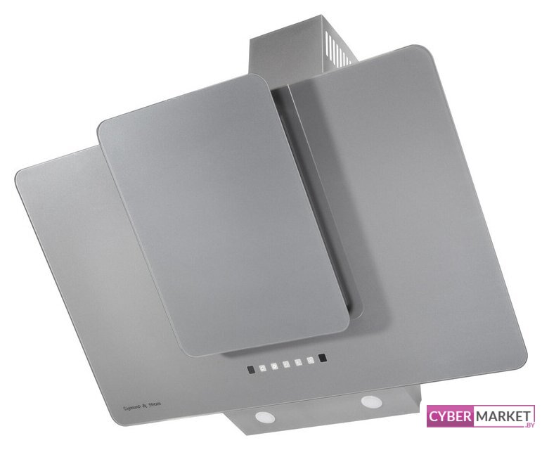 конструкция наклонная, монтаж настенный, ширина 59.5 см, управление сенсорное, производительность вытяжки 1400 м³/ч, цвет серый