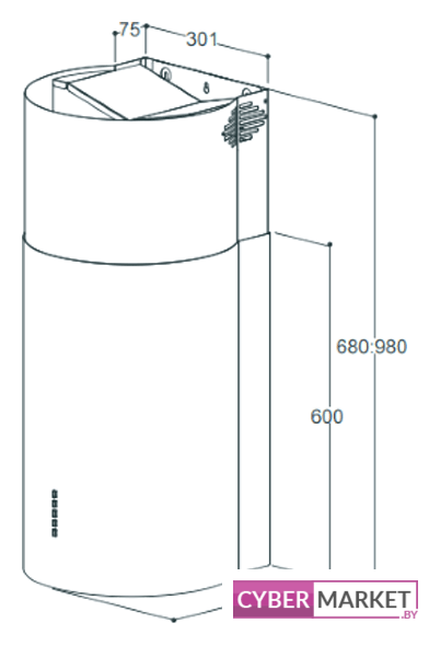 конструкция коробчатая, монтаж настенный, ширина 38 см, управление механическое/кнопочное, производительность мотора 1000 м³/ч, цвет черный