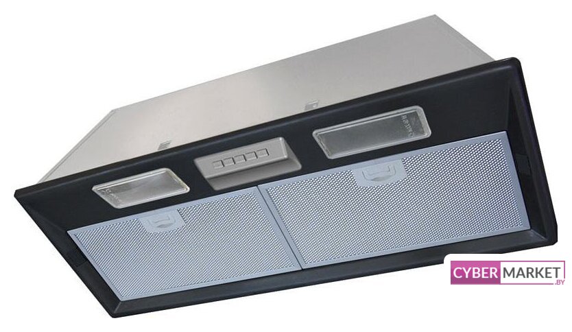 конструкция скрытая, монтаж для встраивания, ширина 53 см, управление кнопочное, производительность мотора 1100 м³/ч, цвет нержавеющая сталь/черный