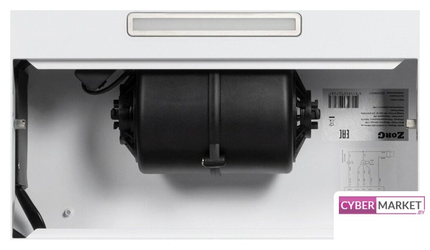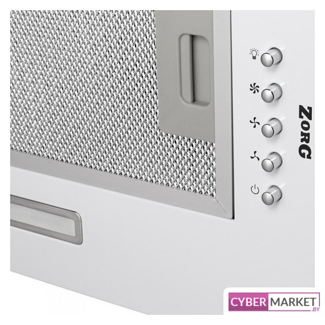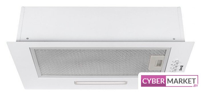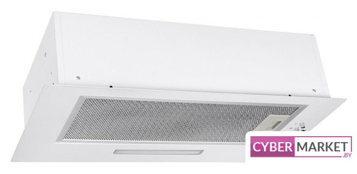 конструкция телескопическая, монтаж для встраивания, ширина 59.5 см, управление механическое/кнопочное, производительность мотора 650 м³/ч, цвет белый