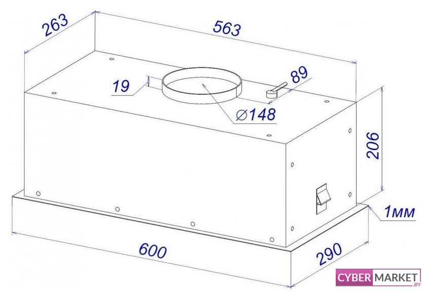 конструкция купольная, монтаж настенный, управление механическое/слайдерное, производительность мотора 650 м³/ч, ширина 90 см