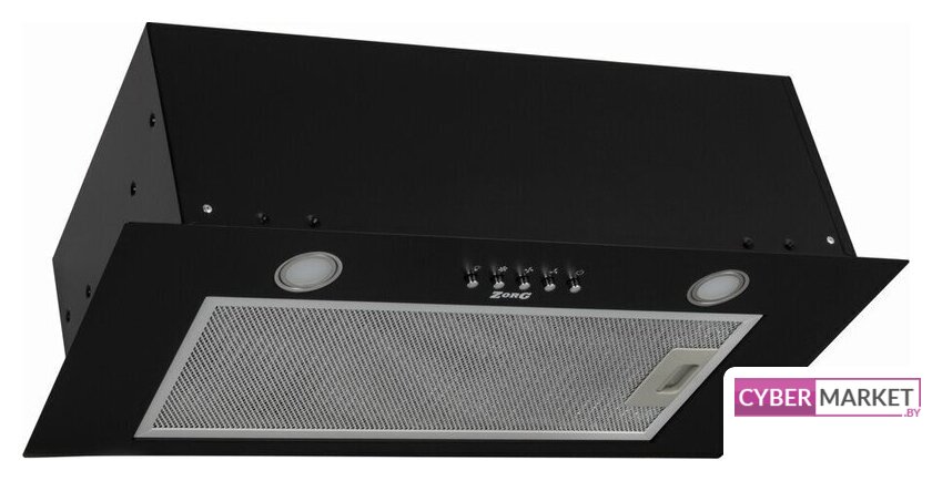конструкция плоская, монтаж для встраивания, ширина 59.6 см, управление механическое/кнопочное, производительность вытяжки 410 м³/ч, производительность мотора 900 м³/ч, цвет черный