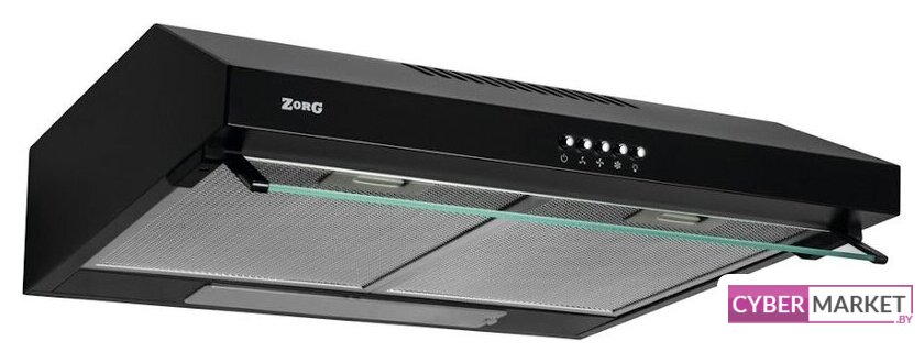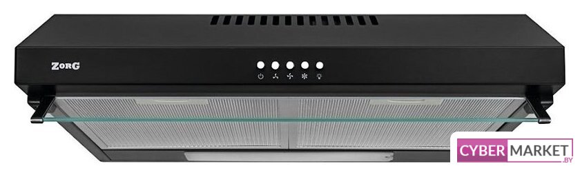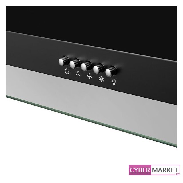 конструкция плоская, монтаж настенный, ширина 59.5 см, управление механическое/кнопочное, производительность мотора 430 м³/ч, цвет черный