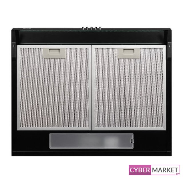 конструкция скрытая, монтаж для встраивания, ширина 60 см, управление механическое/кнопочное, производительность вытяжки 700 м³/ч, производительность мотора 850 м³/ч, цвет черный