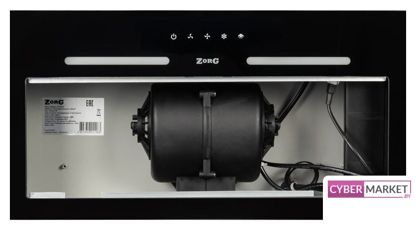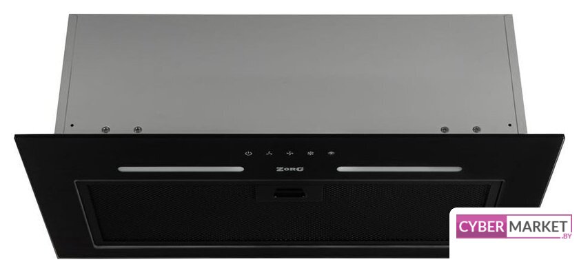 конструкция скрытая, монтаж для встраивания, ширина 59.8 см, управление механическое/кнопочное, производительность мотора 1150 м³/ч, цвет черный
