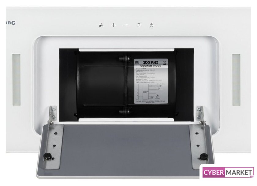 конструкция скрытая, монтаж для встраивания, ширина 59.8 см, управление сенсорное, производительность мотора 1060 м³/ч, цвет белый