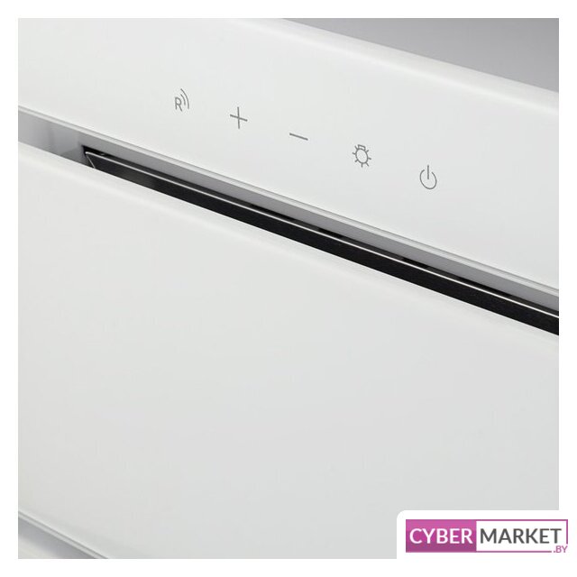 конструкция наклонная, монтаж настенный, ширина 59.5 см, управление сенсорное, производительность вытяжки 1400 м³/ч, цвет белый