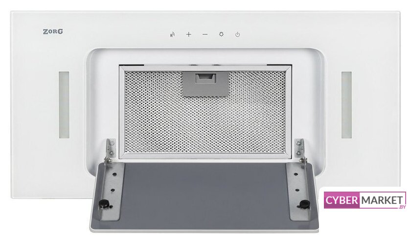 конструкция наклонная, монтаж настенный, ширина 60 см, управление сенсорное, производительность мотора 1000 м³/ч, цвет белый