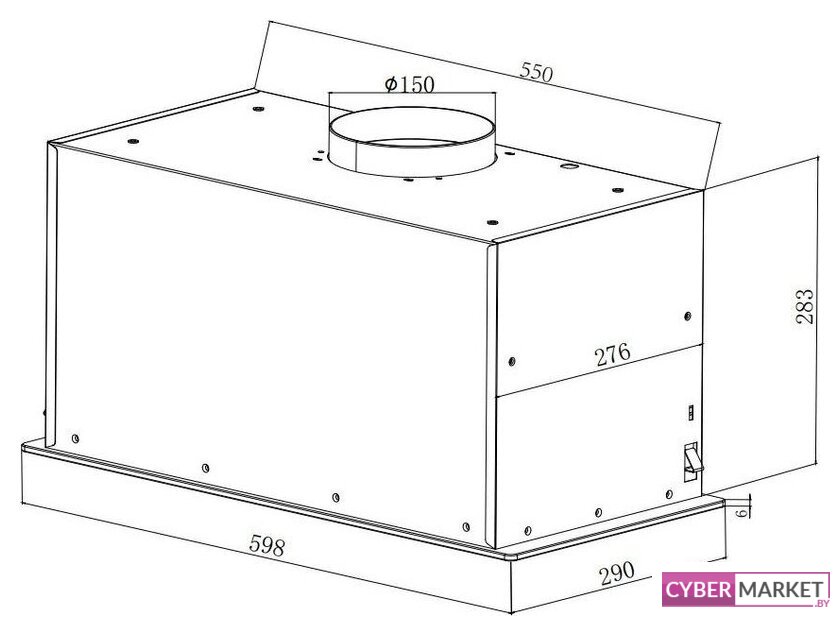 конструкция Т-образная, монтаж настенный, ширина 59.7 см, управление механическое/кнопочное, производительность мотора 790 м³/ч, цвет черный
