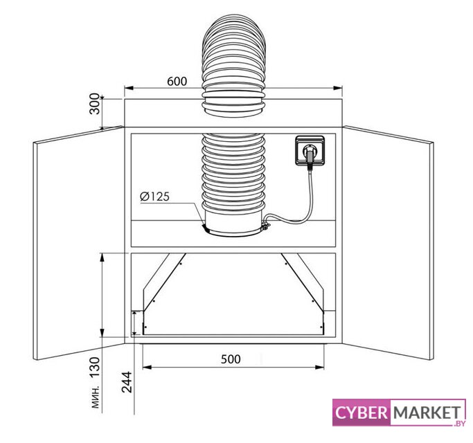 конструкция телескопическая, монтаж для встраивания, управление механическое/слайдерное, производительность мотора 600 м³/ч, ширина 30 см
