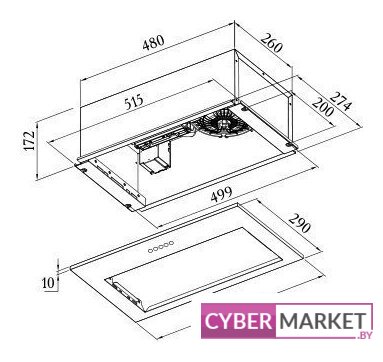 конструкция скрытая, монтаж для встраивания, ширина 54.6 см, управление механическое/кнопочное, производительность вытяжки 800 м³/ч, цвет бежевый