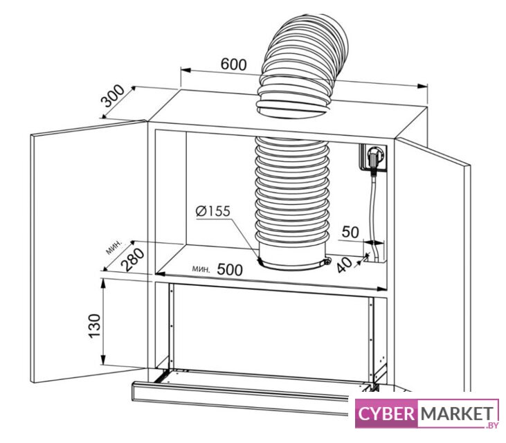 монтаж настенный, управление механическое/кнопочное, производительность мотора 650 м³/ч, ширина 50 см