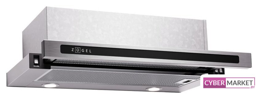 конструкция телескопическая, монтаж для встраивания, ширина 59.5 см, управление механическое/кнопочное, производительность мотора 550 м³/ч, цвет белый