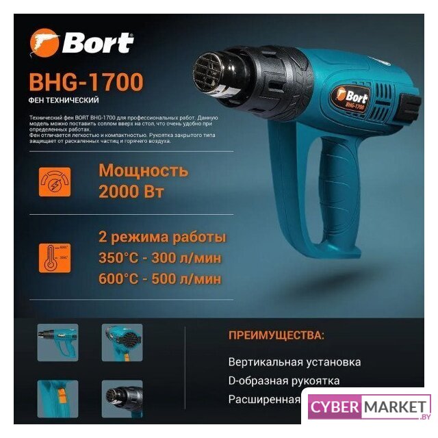 2000 Вт, 350–550 °С, 300–500 л/мин, 1 кг
