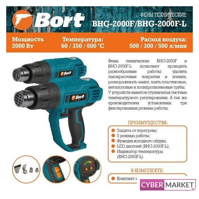 2000 Вт, 350–550 °С, 300–500 л/мин, 0.7 кг