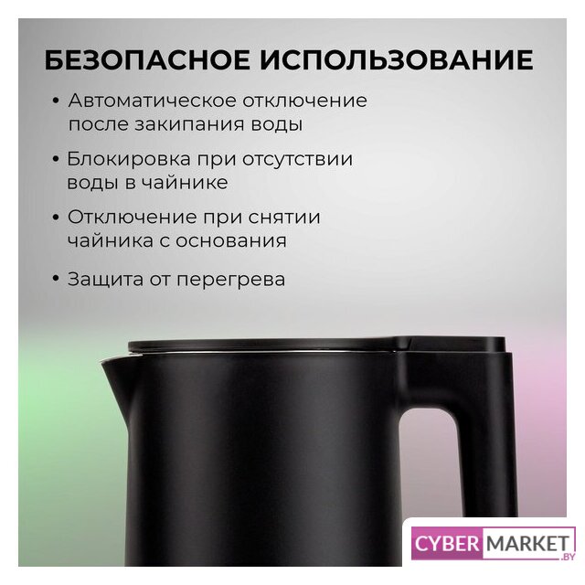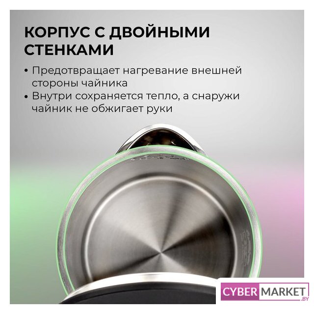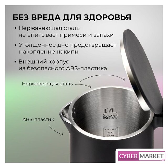 2200 Вт, объем 1.7 л, подсветка, цвет нержавеющая сталь/черный