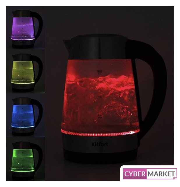 2200 Вт, объем 1 л, подсветка, цвет нержавеющая сталь/прозрачный