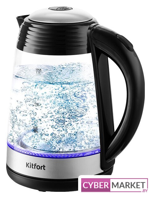 2200 Вт, объем 1.7 л, подсветка, цвет черный/прозрачный