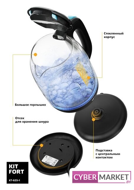 2200 Вт, объем 1.7 л, подсветка, цвет серебристый/черный