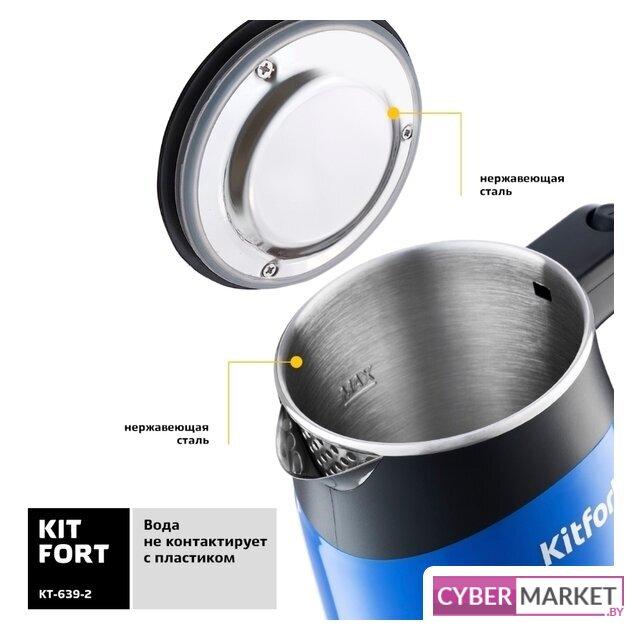 2200 Вт, объем 1.8 л, терморегулятор, подсветка, цвет нержавеющая сталь/прозрачный/черный