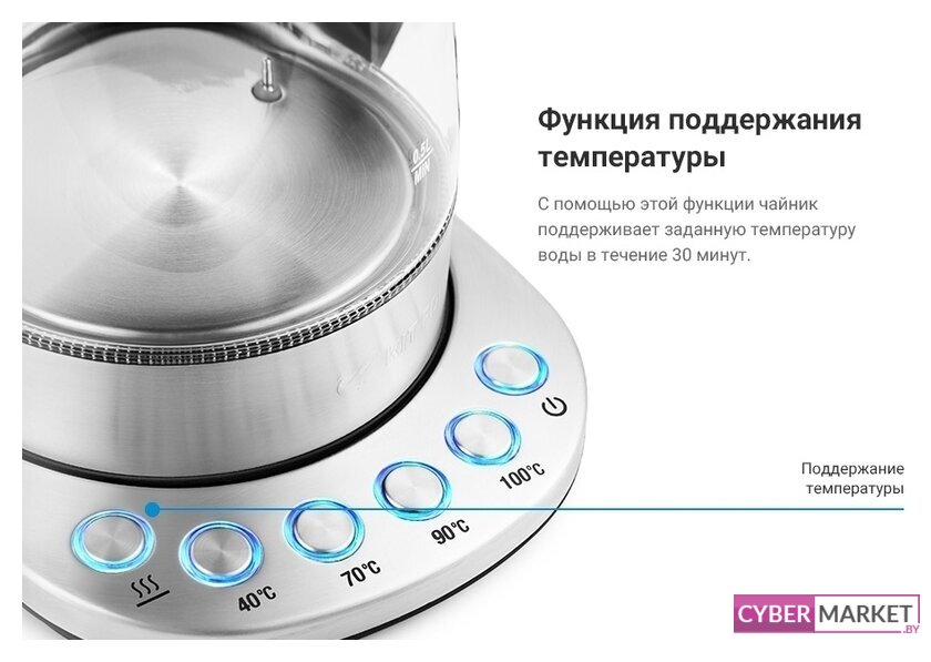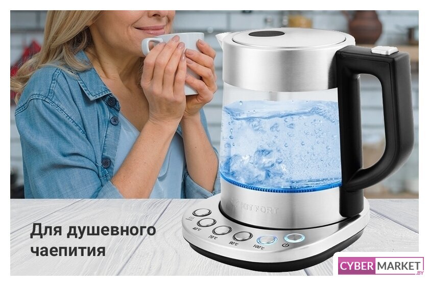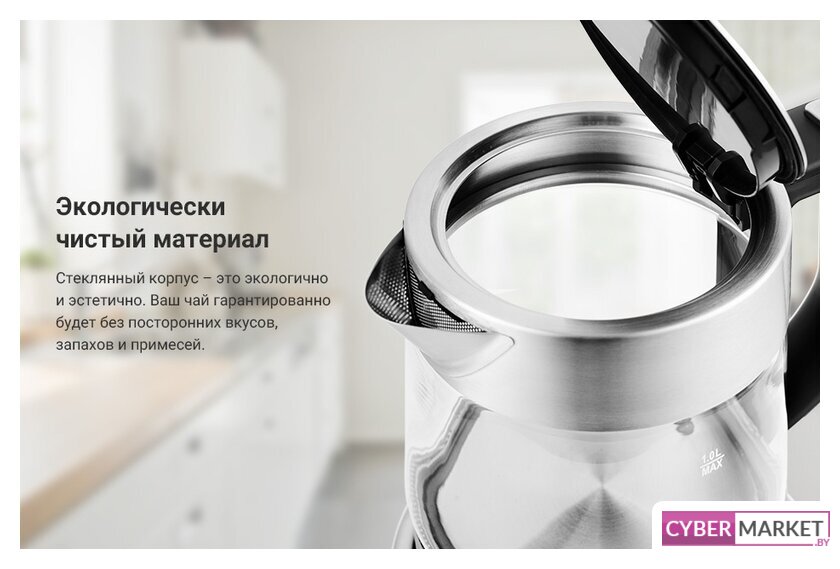 2200 Вт, объем 1.5 л, подсветка, цвет нержавеющая сталь/черный