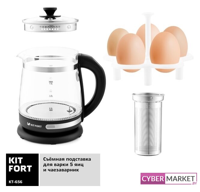 2200 Вт, объем 1.7 л, терморегулятор, подсветка, цвет черный